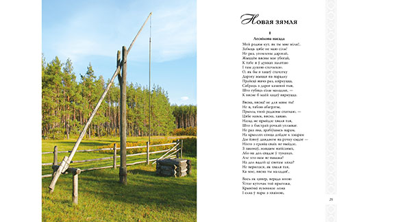 У кнігу ўвайшлі творы народных паэтаў Беларусі Янкі Купалы  («Спадчына», «Курган») і Якуба Коласа («Новая зямля»).